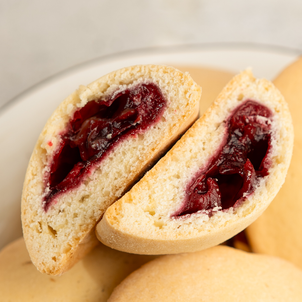 Нежный сочень из рассыпчатого теста с начинкой из спелой вишни.