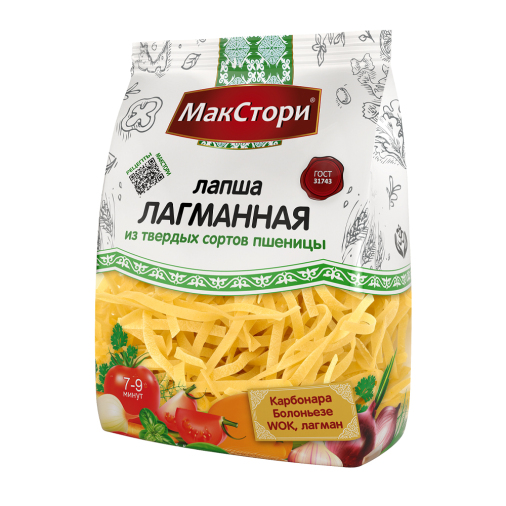 Лапша лагманная Макстори — это макаронные изделия группы А, которые идеально подойдут для приготовления традиционного среднеазиатского блюда. Также они могут стать основой для других восточных рецептов или вкусным гарниром к мясу и овощам.