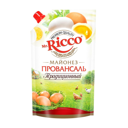 Майонез Mr.Ricco Провансаль традиционный с жирностью 50% в упаковке 350мл добавит вашим блюдам насыщенный и нежный вкус. Отлично подойдёт для приготовления салатов, закусок и соусов, а также для запекания и маринования.