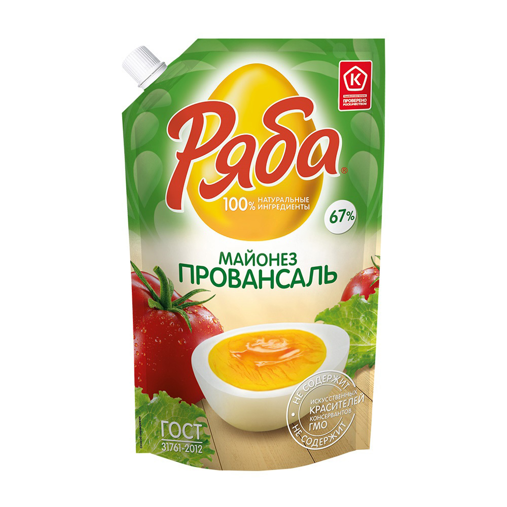Майонез Ряба Провансаль 67% 630г в удобной упаковке дой-пак — идеальный выбор для приготовления вкусных блюд. Этот майонез добавит изысканности салатам, закусками и горячим блюдам. Он прекрасно подойдёт для заправки салатов, приготовления соусов и добавления в кулинарные шедевры.