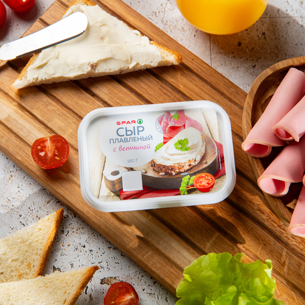 Плавленый сыр SPAR с ветчиной — это отличный выбор для быстрого и питательного перекуса. Он идеально подойдёт для бутербродов, сэндвичей или в качестве начинки для выпечки. Этот сыр добавит неповторимый вкус и аромат вашим любимым блюдам.