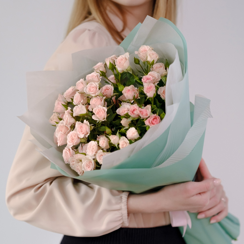 9 кустовых роз, пленка матовая, катушка, лента.
