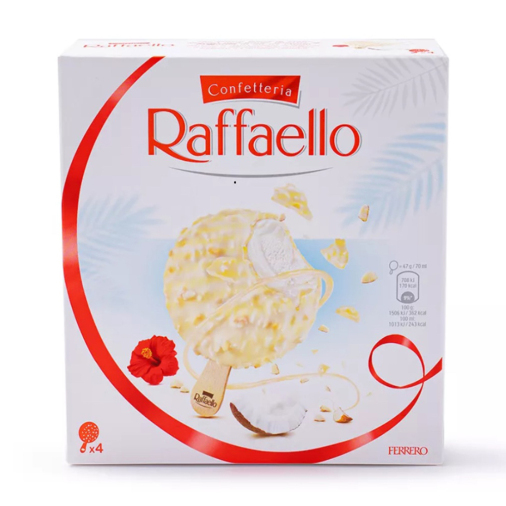 Идеально для быстрого перекуса! Попробуйте изысканное мороженое на палочке Rafaello с нежным вкусом. Оно отлично подойдёт для освежения в жаркий день и порадует любителей сладостей. Может стать вкусным дополнением к чашечке кофе.
