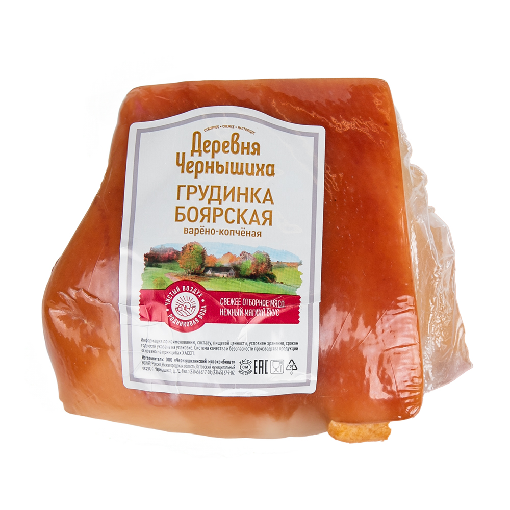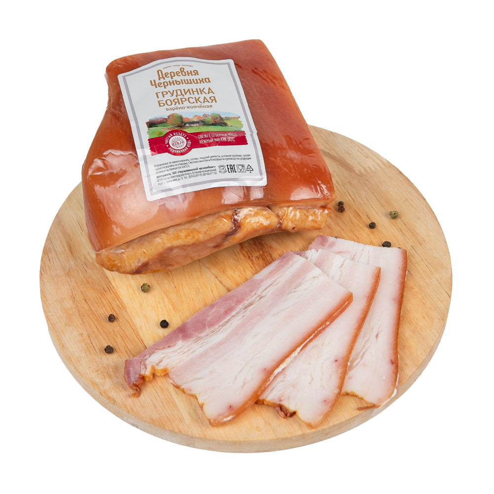 Для приготовления сытных и вкусных блюд подойдёт варёно-копчёная грудинка Боярская от Деревни Чернышиха. Этот мясной деликатес станет отличным дополнением к сытному обеду или ужину, а также украсит собой праздничный стол. Грудинка идеально подходит для горячих блюд и холодных закусок.