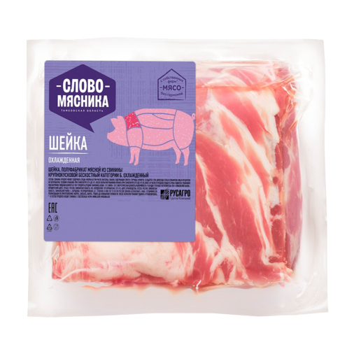 Шейка свиная без кости Слово мясника — это нежное мясо с тонкими жировыми прослойками, которое подходит для приготовления на гриле, запекания в духовке или тушения. Из него можно сделать сочный шашлык, ароматный мясной рулет или запечь целым куском.