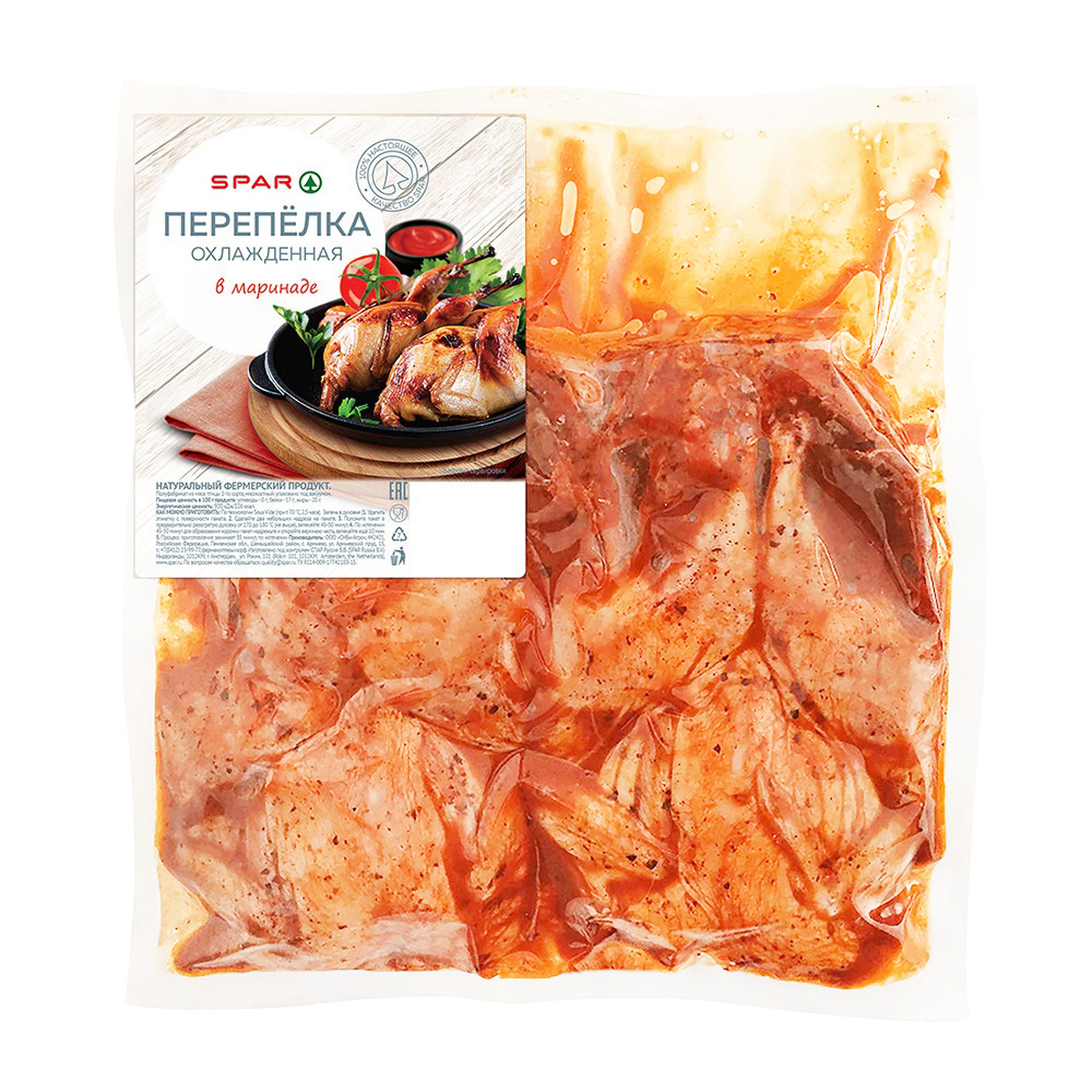 Тушки перепелов 1 сорт, целые потрошеные, соль, специи (перец черный, паприка сладкая, тмин, майоран), чеснок, петрушка сушеная, вода, растительное масло.