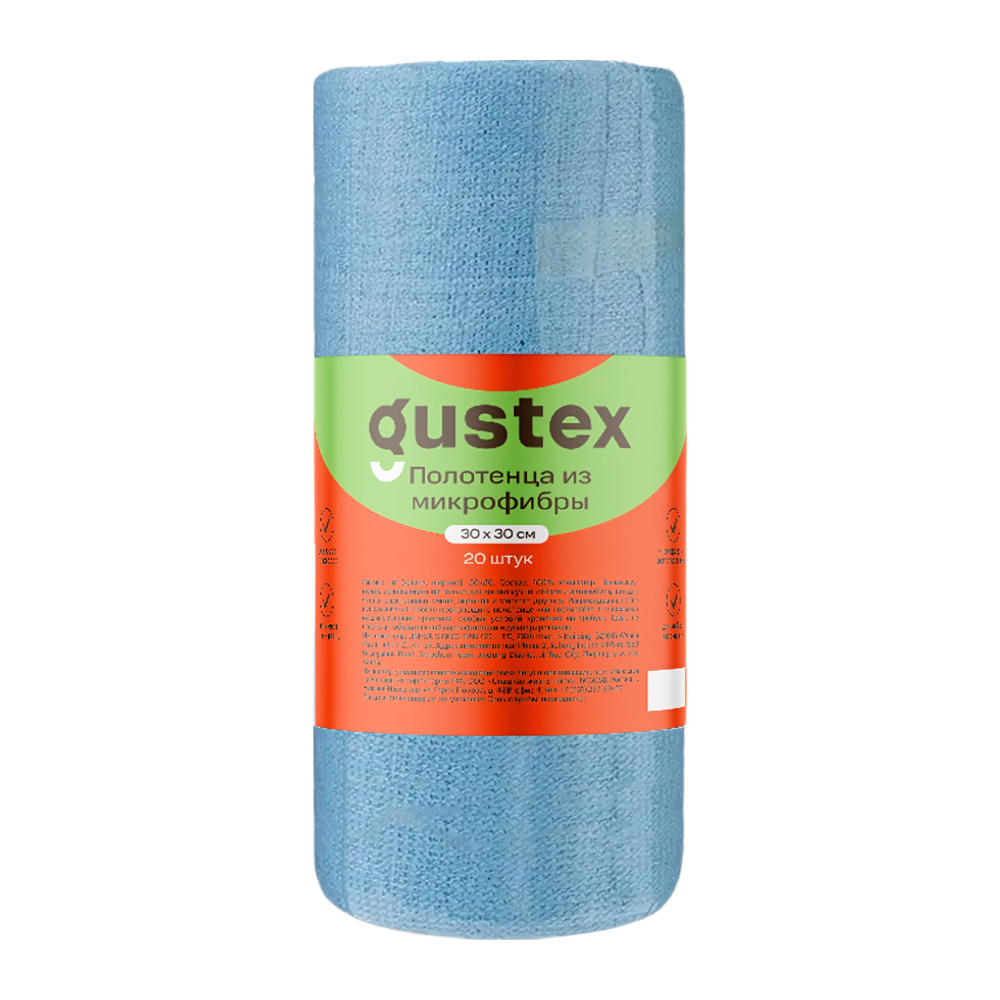 Полотенца Gustex из микрофибры в рулоне — это удобный и практичный выбор для уборки. Они эффективно впитывают влагу и не оставляют разводов. Полотенца подходят для чистки различных поверхностей: от кухонной столешницы до стеклянных дверей. Благодаря компактной упаковке салфетки удобно хранить. В рулоне 20 штук — хватит надолго!