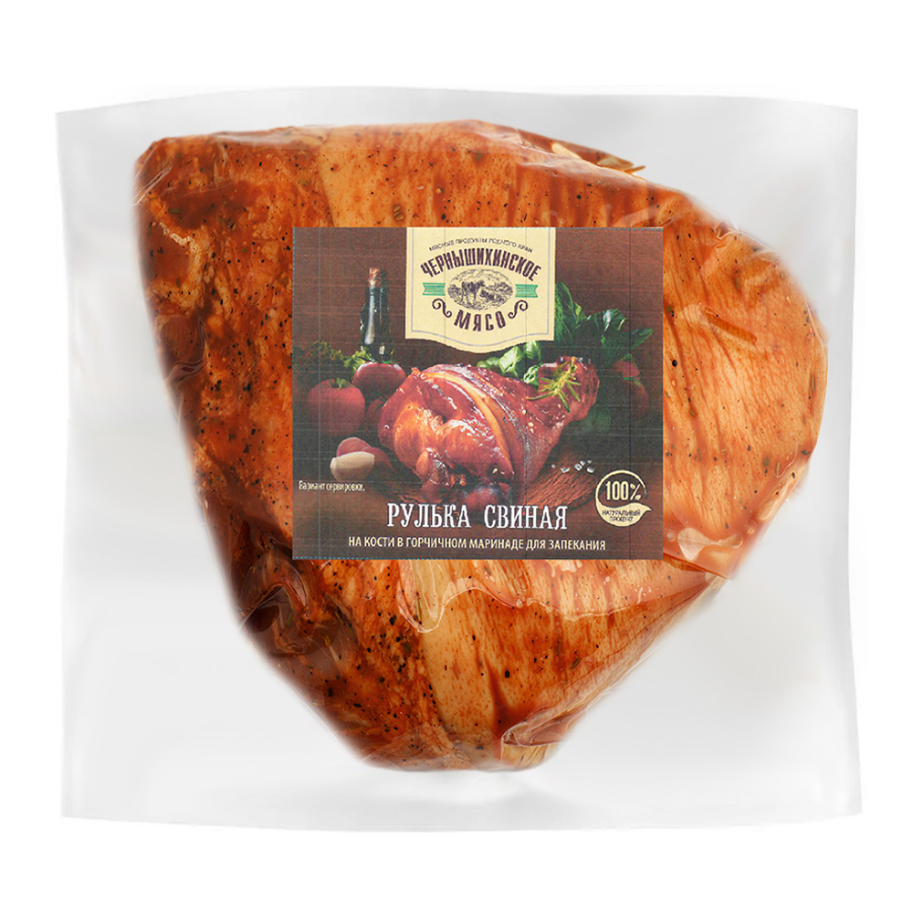 Рулька свиная, овощи и пряности (горчица, черный перец, лук,куркума), соль, сахар, регулятор кислотности (диацетат натрия), загустители (гуаровая камедь, ксантановая камедь), медовый порошок, ароматизаторы.