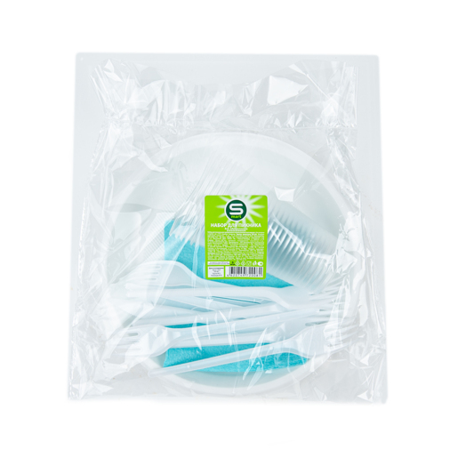 Столовый набор для пикника на природе, барбекю или похода. Изготовлен из прочного пластика. Не займёт много места в багаже.