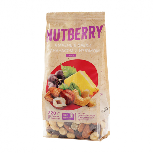 Смесь Nutberry с жареными орехами, ананасом и изюмом — это отличный выбор для тех, кто ценит натуральные и вкусные ингредиенты. Она станет идеальным дополнением к вашему завтраку, перекусу или десерту. Используйте смесь для приготовления салатов, выпечки или просто наслаждайтесь ею в качестве питательного снека.