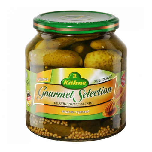 Корнишоны Kuhne сладкие добавят пикантности и хрустящей текстуры вашим блюдам. Идеальны для салатов, сэндвичей и закусок. Отлично подходят для украшения праздничных блюд и создания вкусной начинки для бургеров.