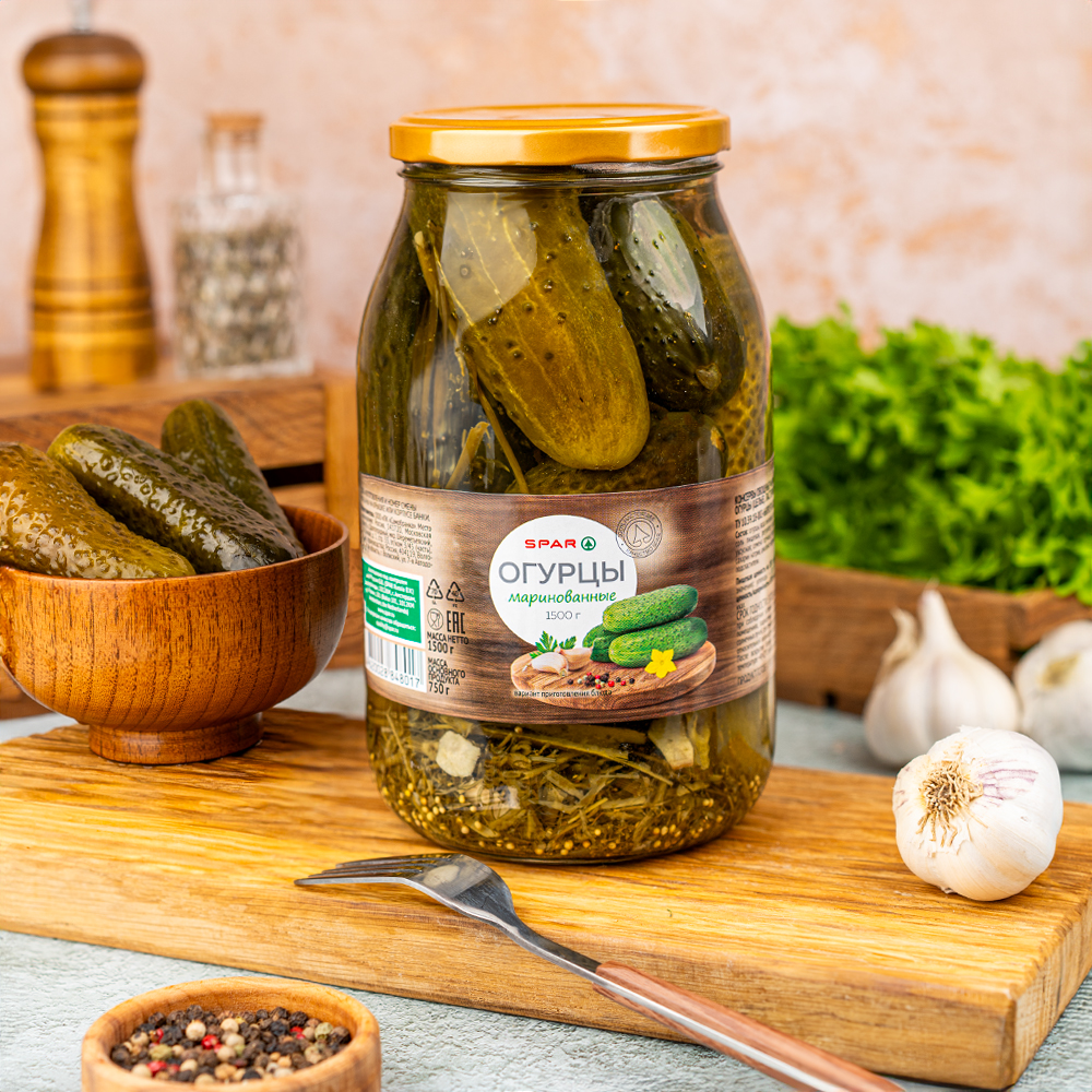 Огурцы SPAR приготовлены на современном оборудовании с тщательным соблюдением технологии. Хрустящие огурчики залиты кисло-сладким маринадом, обогащенным укропом, чесноком и другими специями, которые очень деликатно подчеркивают все достоинства основного продукта.