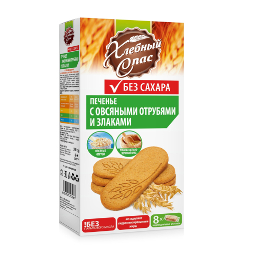 Мука пшеничная хлебопекарная в/с, масло растительное (подсолнечное), подсластитель - мальтит, мука ржаная цельнозерновая, вода питьевая, отруби овсяные, хлопья ячменные, экстракт ячменного солода, разрыхлители: гидрокарбонат натрия, гидрокарбонат аммония; соль, волокна пищевые (яблочные), эмульгатор - лецитин подсолнечный.