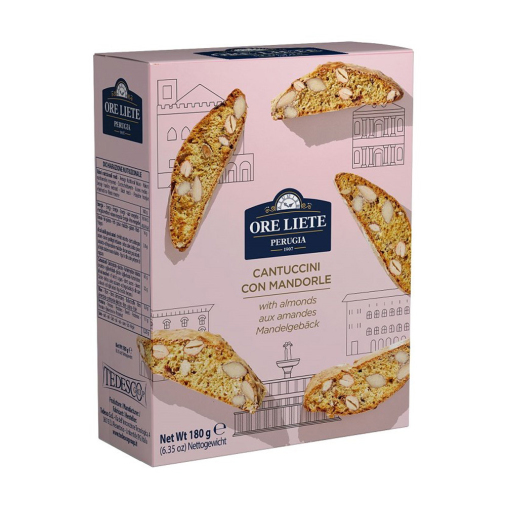 Пшеничная мука, сахар, миндаль 20%, яйца, сливочное масло, яичный желток, мед, разрыхлители: гидрокарбонат аммония, гидрокарбонат натрия, натуральные ароматизаторы (апельсин, миндаль и ваниль), соль. Может содержать следы горчицы, сои и других орехов.