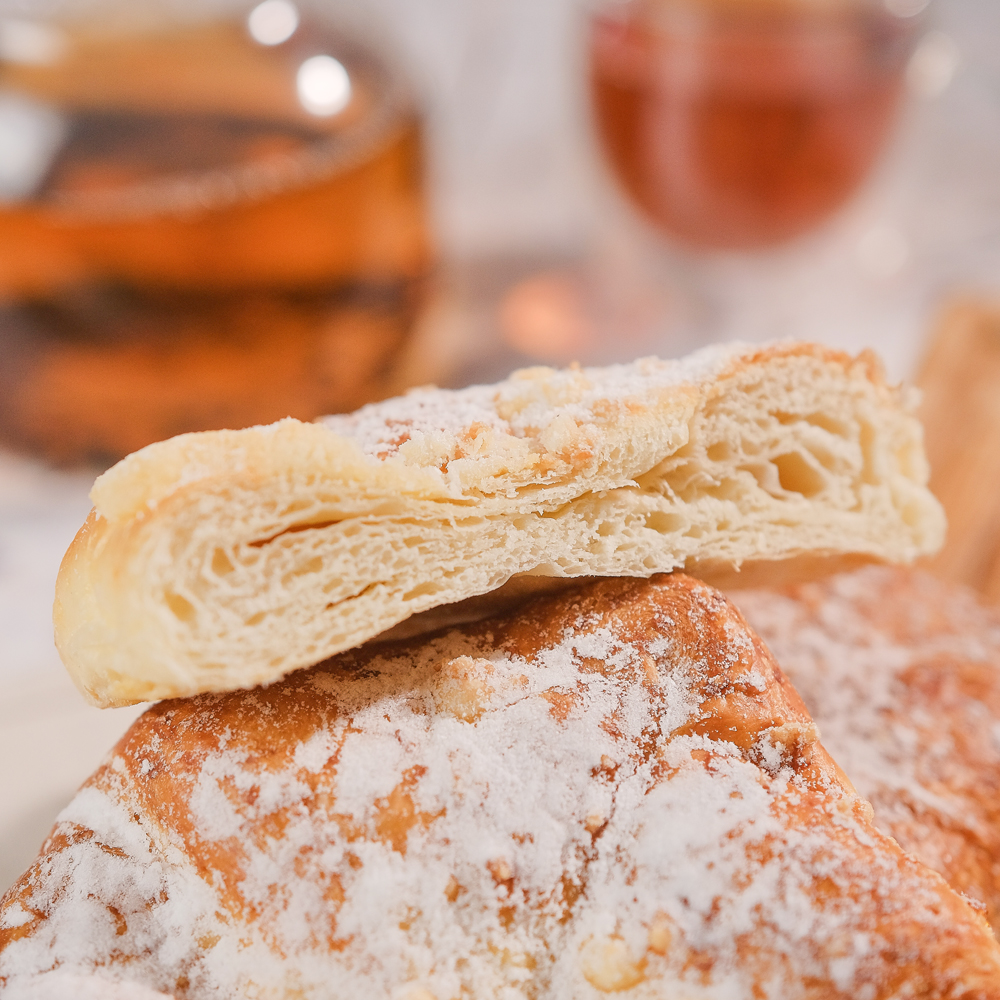 Нежная и хрустящая слоёная выпечка, которая станет отличным дополнением к чаепитию. Идеальна для перекуса в любое время дня или изысканного десерта. Подходит для подачи к кофе или в качестве сладкого угощения для гостей. Прекрасно сочетается с различными начинками и может стать основой для создания сладких и солёных многослойных бутербродов.