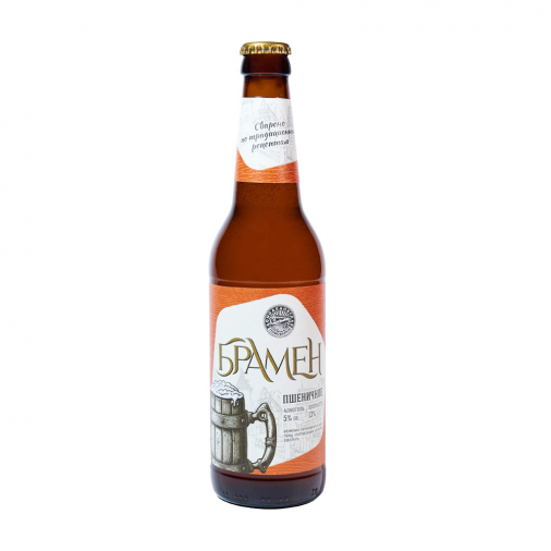 Брамен Пшеничное - нефильтрованный пастеризованный осветлённый пшеничный эль, солодовый аромат с оттенком банана и добавлением пряных и дынных нот хмеля Huell Melon, солодовый вкус с выраженными фруктовыми тонами и легкой кислинкой.
