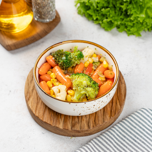 Свежая и яркая смесь, приготовленная на пару, — это здоровое и вкусное дополнение к любому блюду. Отобранные вручную овощи сохраняют свою текстуру и питательные вещества благодаря бережной обработке. Это простой и быстрый способ добавить необходимые витамины и клетчатку в свой рацион.