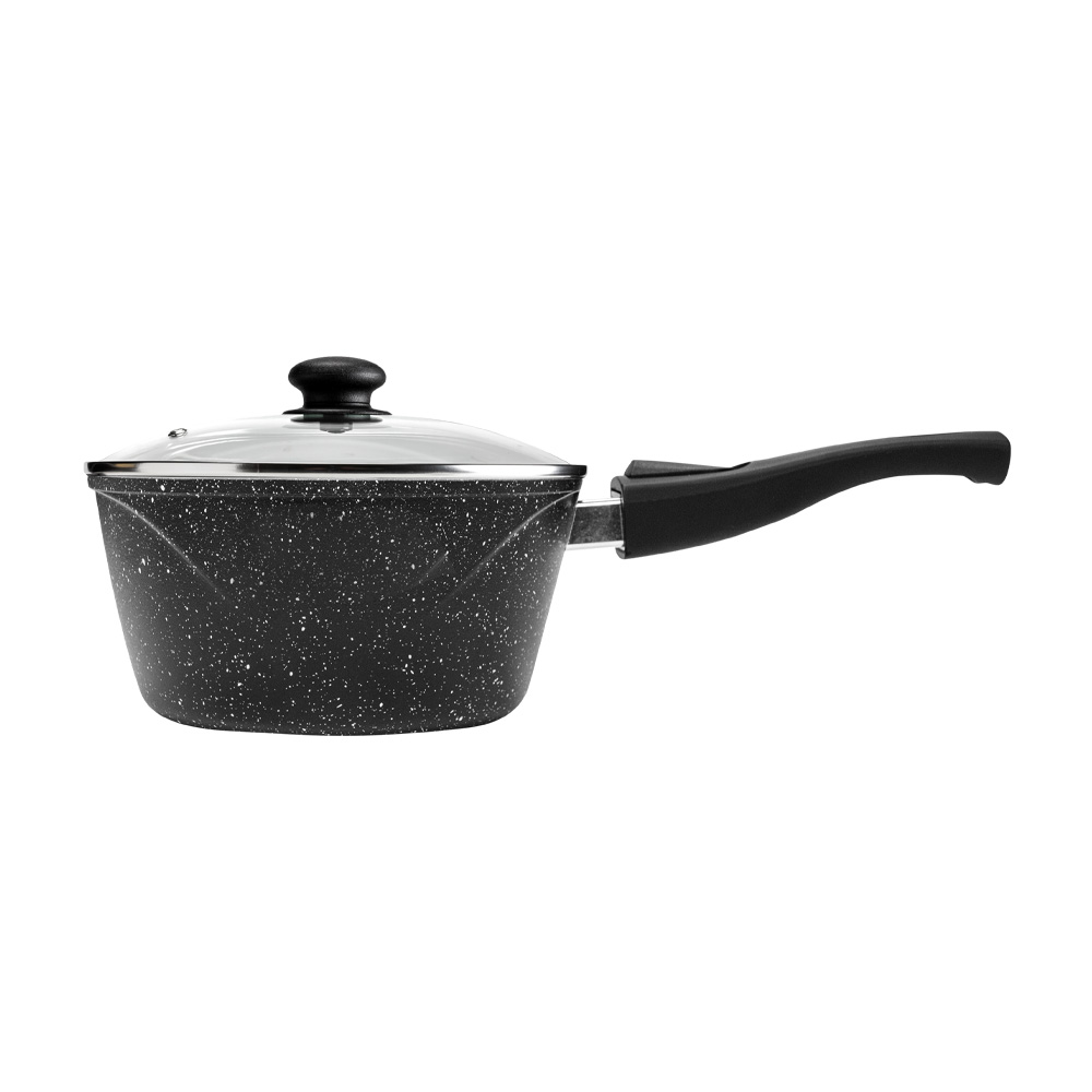 Пищевой алюминий, антипригарное покрытие Greblon, бакелитовая ручка. Крышка из термостойкого стекла, обод крышки из нержавеющей стали, ручка крышки из бакелита.