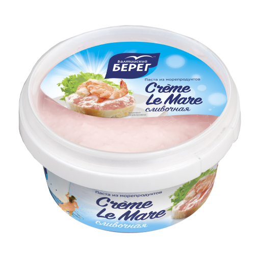 Масло подсолнечное рафинированное дезодорированное, морепродукты вареные рубленые (кальмар гигантский, креветка ваннамей), вода питьевая, сахар, соль, сухой яичный желток, загустители: Е1450, Е415, Е412, сливки сухие, регулятор кислотности Е260, усилитель вкуса и аромата Е621, ароматизаторы (содержат ракообразных), консерванты: Е202, Е211, краситель Е120.