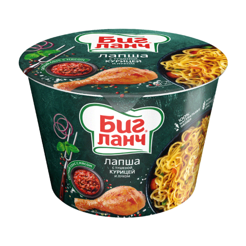Лапша: мука пшеничная хлебопекарная высшего сорта, масло растительное, вода, соль (соль, агент антислеживающий - ферроцианид калия), загуститель - камедь гуаровая. Суповая основа: соль (соль, агент антислеживающий - ферроцианид калия), сахар, ароматизатор «курица» (вещества вкусоароматические, усилители вкуса и аромата (глутамат натрия, инозинат натрия, гуанилат натрия), регулятор кислотности - ацетат натрия, порошок куриный, антиокислитель - экстракт розмарина), усилитель вкуса и аромата - глутамат натрия, порошок луковый, экстракт дрожжевой, кориандр молотый, перец черный молотый, смесь пряностей- карри, корень сельдерея сушеный, куркума молотая, порошок чесночный, усилители вкуса и аромата (5'-инозинат натрия 2-замещенный, 5'-гуанилат натрия 2-замещенный), перец красный молотый, регулятор кислотности - кислота лимонная, орех мускатный молотый, базилик сушеный, лист лавровый молотый, имбирь молотый. Смесь сушеных овощей: морковь, лук зеленый, паприка красная, корень сельдерея, лук.