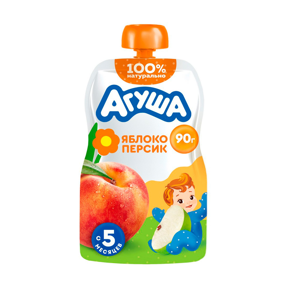 Идеальное решение для первого прикорма и расширения рациона малыша — нежное фруктовое пюре в удобной упаковке. Оно порадует ребёнка приятным вкусом яблока и персика. Подходит для малышей, которые уже знакомы с фруктовыми пюре. Удобно брать с собой в дорогу или на прогулку.