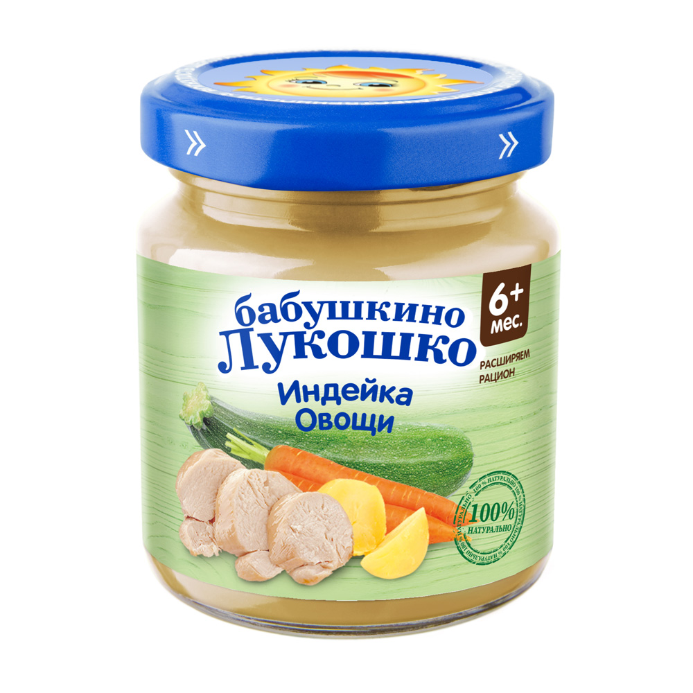 Картофель, филе индейки, пюре из кабачков, пюре из моркови, вода питьевая, масло подсолнечное.