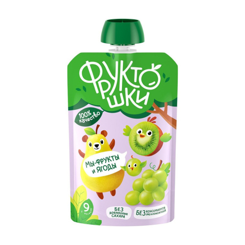 Пюре из яблок, пюре из груш, сок из винограда, пюре из киви. Без добавления сахара. Содержит сахара природного происхождения.