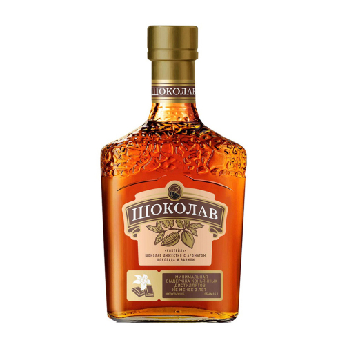 Вода подготовленная (исправленная), спирт этиловый ректификованный из пищевого сырья Люкс, сахарный сироп, коньячный дистиллят (выдержанный не менее трех лет), краситель пищевой сахарный колер I простой, ароматизатор пищевой «Какао-шоколад», ароматизатор пищевой «Ваниль», регулятор кислотности кислота лимонная.