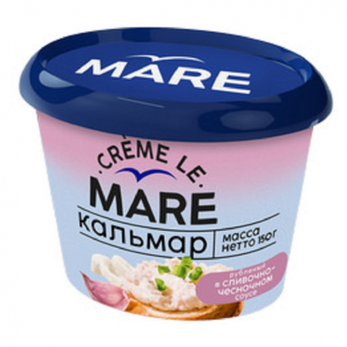 масло подсолнечное рафинированное дезодорированное, мясо кальмара гигантского вареное рубленое, вода питьевая, сахар, загуститель дикрахмаладипат ацетилированный, сухой яичный желток, загустители: эфир крахмала и натриевой соли октенилянтарной кислоты, ксантановая камедь, гуаровая камедь, соль, сливки сухие, чеснок сушеный, концентрат сывороточного белка, регулятор кислотности уксусная кислота ледяная.