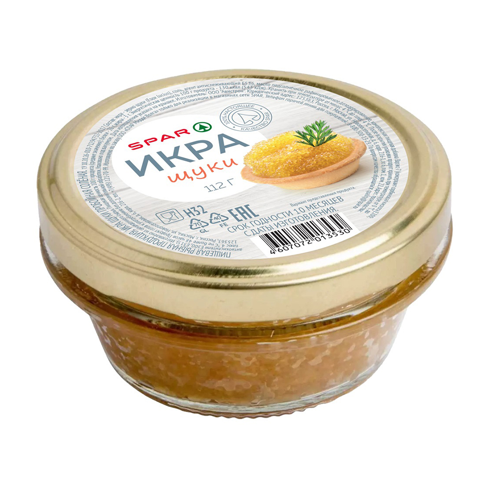 Икра зерно-щуки (esox lucius), соль, агент антислеживающий Е536, масло подсолнечное рафинированное дезодорированное, комплексная пищевая добавка Варэкс-7 (консервант Сорбиновая кислота Е200, антиокислители Е300,Е315), изготовлено из охлажденного сырья.