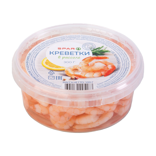 Креветки очищенные отварные (*D-креветка пестрая, *P-креветка белоногая (ваннамей), *E-креветка тити, *L-креветка розовая, *O-креветка северная, *T-креветка Кидди), вода, соль (содержит антислеживающий агент Е536), регуляторы кислотности: лимонная, винная, яблочная и молочная кислоты, консерванты бензоат натрия и сорбат калия, ароматизатор пищевой, подсластитель сахарин. Возможно наличие следов моллюсков, молока, яичных продуктов, горчицы. Содержит подсластитель. *-Код вида креветки.