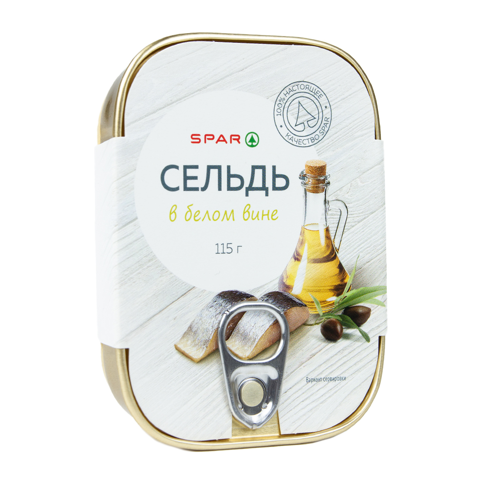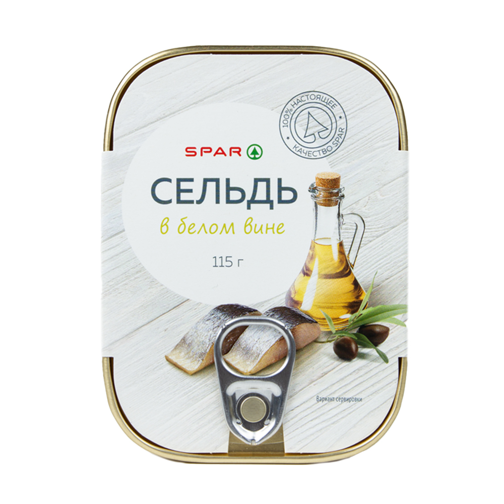 Сельдь тихоокеанская (Clupea pallasi pallasi), вода, соль, сахар, вино белое, винный уксус белый, специи (кориандр, гвоздика, душистый перец), усилитель вкуса и аромата Е621, антиокислитель Е300, регуляторы кислотности: Е331, Е575, Е262, молочная, яблочная и лимонная кислоты, декстроза, смесь пряностей, консерванты Е211 и Е202. Возможно наличие следов молока, яичных продуктов, горчицы.