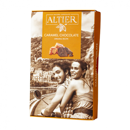 Карамельный шоколад Altier обладает оригинальной рецептурой. Идеальное сочетание насыщенных оттенков какао-бобов и сладких нюансов карамели. Один кусочек восхитительно нежного шоколада - это триггер, который переключит вас от рутинных дел и забот на мысли о самом приятном. Разбудите в себе чувство прекрасного с насыщенным вкусом шоколада Altier.