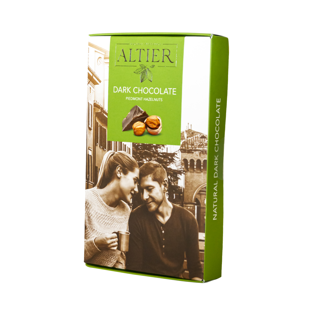 Тёмный шоколад с пралине из пьемонтского ореха – это путешествие на двоих, даже если вы сегодня решили остаться дома. Элегантное сочетание нежности какао-бобов и терпкости дробленого фундука. Вспомните свои самые яркие поездки и запланируйте новые. Шоколад с итальянским орехом располагает к мечтам.