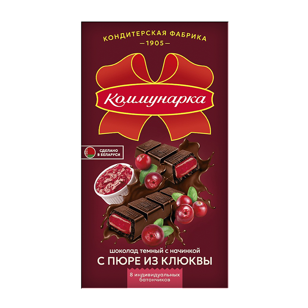 Темный шоколад с клюквой Коммунарка — для ценителей необычных вкусов. Насыщенный вкус темного шоколада гармонично сочетается с кислинкой клюквы. Отличный выбор для чаепития или перекуса. Подходит для создания десертов и украшения выпечки.
