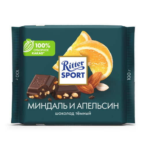 Темный шоколад RITTER SPORT с миндалём и апельсином — для тех, кто ценит насыщенный вкус и хрустящие кусочки орехов. Идеален для перекуса в течение дня или в качестве дополнения к чашке кофе или чая. Отличный выбор для сладкоежек и любителей шоколада.