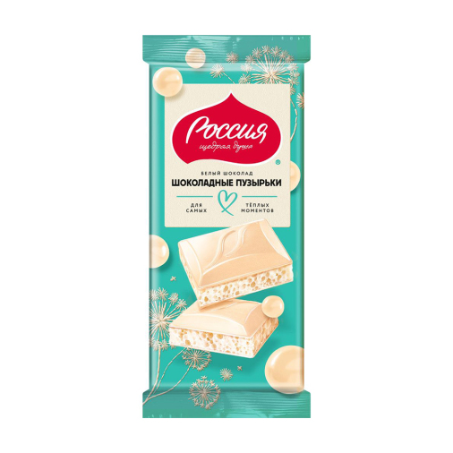 Белый шоколад Россия порадует любителей сладкого своим нежным вкусом и приятной текстурой. Внутри плитки спрятаны воздушные пузырьки, создающие удивительное ощущение легкости и воздушности каждого кусочка. Идеально подходит для быстрого перекуса или сладкого сюрприза друзьям и близким.