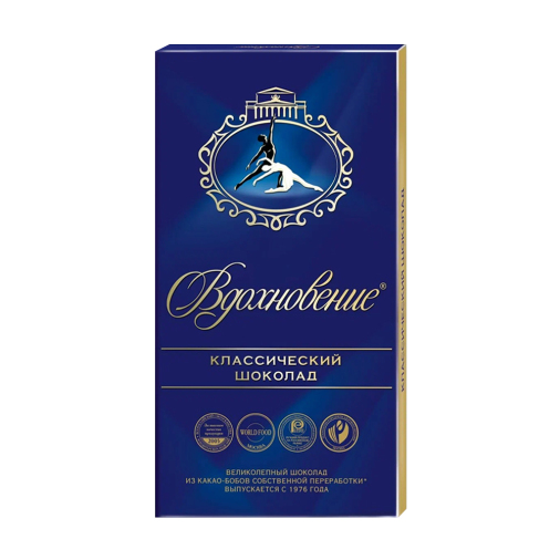 Шоколад Вдохновение — это гармоничное сочетание насыщенного вкуса какао и нежной текстуры. Плитка подходит для украшения десертов, а также в качестве дополнения к чаю или кофе. Попробуйте добавить её в выпечку или использовать для создания шоколадной крошки.