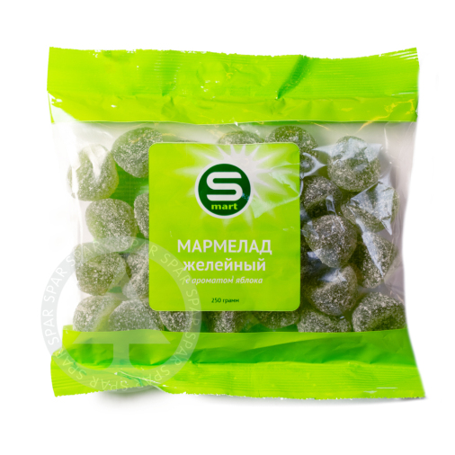 Состав: сахар-песок; патока карамельная; желирующий агент: пектин; сок яблочный; регулятор кислотности: лимонная кислота; влагоудерживающий агент: сорбитовый сироп; ароматизатор: яблоко; консервант: сорбиновая кислота; краситель натуральный: «Хлорофилл».
