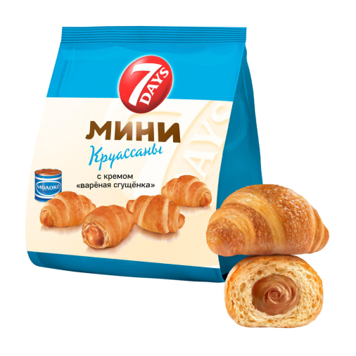 Мини-круассаны 7 Days с кремом варёная сгущёнка — идеальный выбор для завтрака или перекуса. Нежные и хрустящие, они отлично сочетаются с горячим напитком. Круассаны удобно брать с собой на работу или учёбу, а также использовать для быстрых перекусов на ходу.
