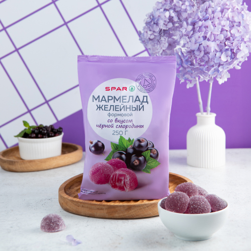 Мармелад с ароматом черной смородины — сладкий и ароматный десерт, который порадует вкусом и поднимет настроение. Идеален для перекуса, дополнит чашечку чая или кофе. Подходит для украшения десертов и тортов.