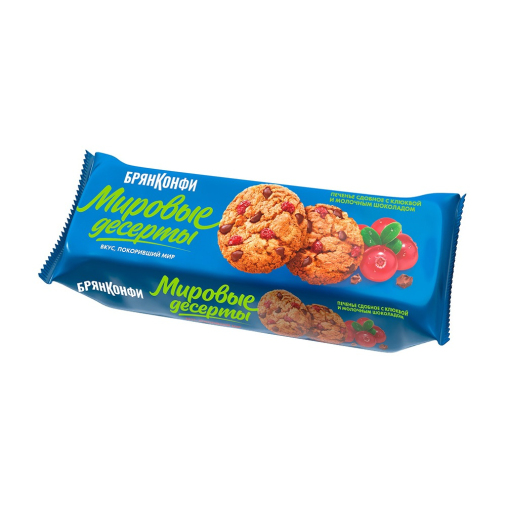 Мука пшеничная; маргарин (рафинированные дезодорированные растительные масла в натуральном и модифицированном виде, в том числе соевое; вода питьевая; эмульгаторы (Е471, Е475); соль; ароматизатор «Сливки-молоко»; краситель Е160а; регулятор кислотности лимонная кислота; антиокислители: аскорбиновая кислота, Е307); сахар; вода питьевая; жировая глазурь (сахар, растительный жир, сыворотка молочная сухая, какао-порошок, эмульгатор лецитин соевый, ароматизатор ванилин); клюква сушеная (клюква сушеная (клюква, сахар, растительное масло, регулятор кислотности лимонная кислота), мука рисовая); инвертный сироп (сахар, регуляторы кислотности: гидрокарбонат натрия (сода пищевая), лимонная кислота); сыворотка молочная сухая; молочная шоколадная масса (сахар, масло какао, тёртое какао, сыворотка молочная сухая, лактоза, сухое цельное молоко, эмульгатор лецитин соевый, ароматизатор ванилин); разрыхлители: гидрокарбонат аммония, гидрокарбонат натрия (сода пищевая); соль.