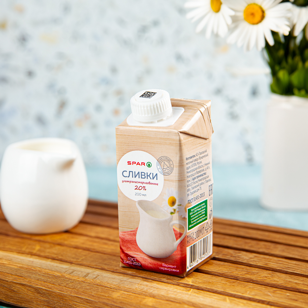 Сливки «SPAR» в удобной упаковке с крышкой – это универсальный помощник на кухне. Они идеально подойдут для создания кремов и соусов, а также для придания нежного вкуса горячим напиткам и разнообразным десертам. Небольшая упаковка позволяет использовать сливки сразу, без необходимости хранения.