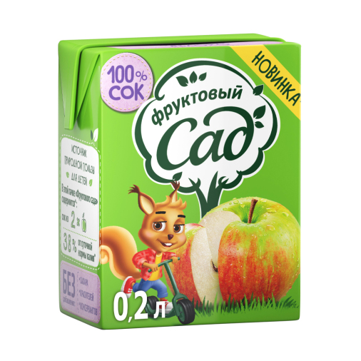 Радость — она в простых вещах: в улыбке близких, красоте природы или в стаканчике сока на семейном пикнике. Вкусный 100% яблочный сок «Фруктовый cад» — еще один повод для радости: только яблочки и ничего лишнего! 100% яблочный сок без добавленного сахара. Без красителей и консервантов Приятный и сбалансированный вкус 100% яблочного сока Удобно взять с собой В 1 стакане "Фруктового сада" содержится сок из 2,5 яблок и 48% от суточной нормы калия «Фруктовый Cад» – один из самых популярных соковых брендов в России. Ассортимент представлен широкой линейкой 100% соков, нектаров, морсов и компотов для всей семьи из натуральных фруктов и ягод. Стремясь сделать продукт вкуснее для своих потребителей, в 2018 году бренд улучшил рецептуру 5 самых популярных вкусов на рынке (Яблоко, Апельсин, Мультифрукт, Персик и Томат). Теперь в них еще больше фруктов и меньше сахара. Попробуйте сами!