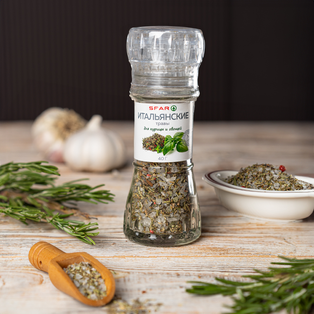 Ароматная смесь широко используется салатах, супах, в овощных блюдах и соусах, при приготовлении жареного мяса, рыбы. Добавление приправы придаст любому блюду оригинальный ароматно-вкусовой букет, характерный для итальянской кухни.