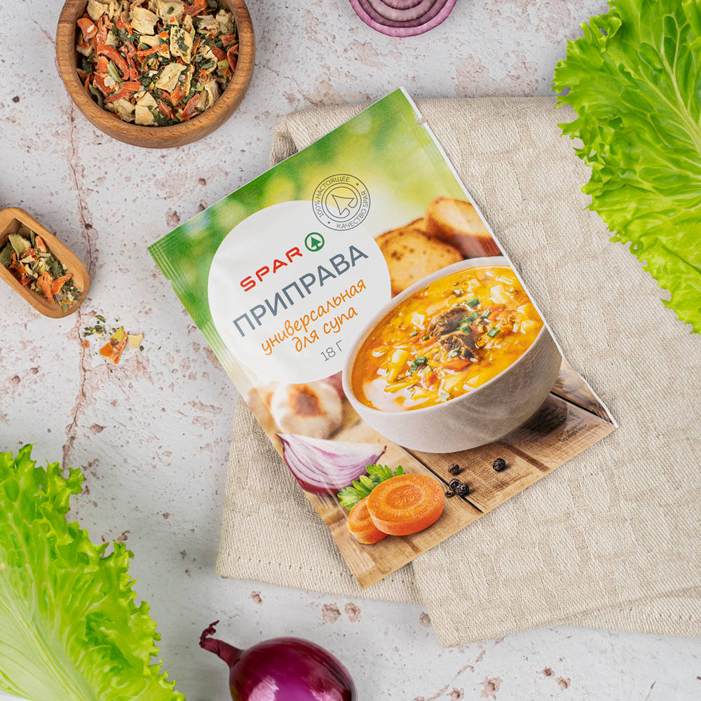 Приправа SPAR универсальная для супа — это идеальное сочетание специй, которое обогатит вкус ваших первых блюд. Она придаст бульонам и супам насыщенный аромат и пикантный вкус. Приправу можно использовать для приготовления овощных, мясных и рыбных супов.