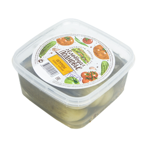 Огурцы, соль, чеснок, семя укропа, корень хрена. Возможно наличие следов кунжута, арахиса и сои.