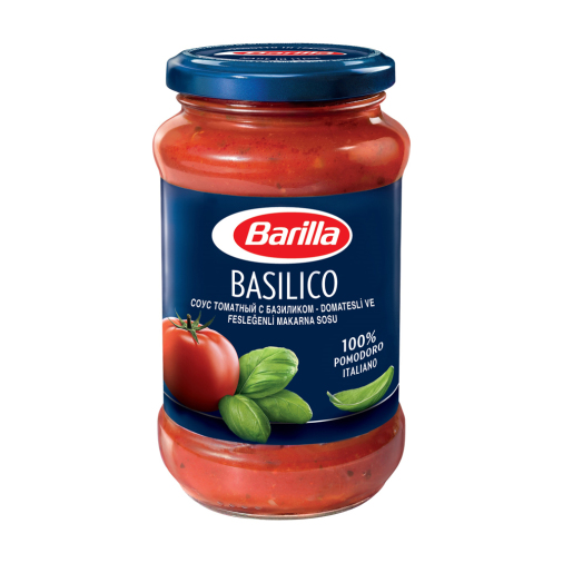 Мякоть томатов 72%, томатная паста 14%, лук, масло подсолнечное рафинированное, базилик, сахар, соль, ароматизатор натуральный (базилик).