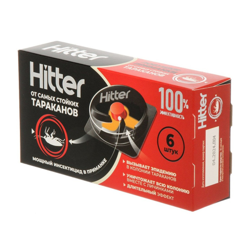Ловушка Hitter от тараканов эффективно борется с тараканами, обеспечивая защиту вашего дома. Простое в использовании средство удобно разместить в местах обитания насекомых. В комплект входит 6 ловушек, которые быстро и надёжно избавят вас от неприятных гостей.
