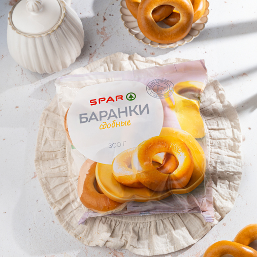 Сдобные баранки SPAR — идеальный выбор для чаепития. Баранки отлично подходят к горячим напиткам, придают чаепитию особый колорит. Их можно использовать для приготовления перекусов или брать с собой в дорогу. Продукт порадует своим качеством и вкусом.